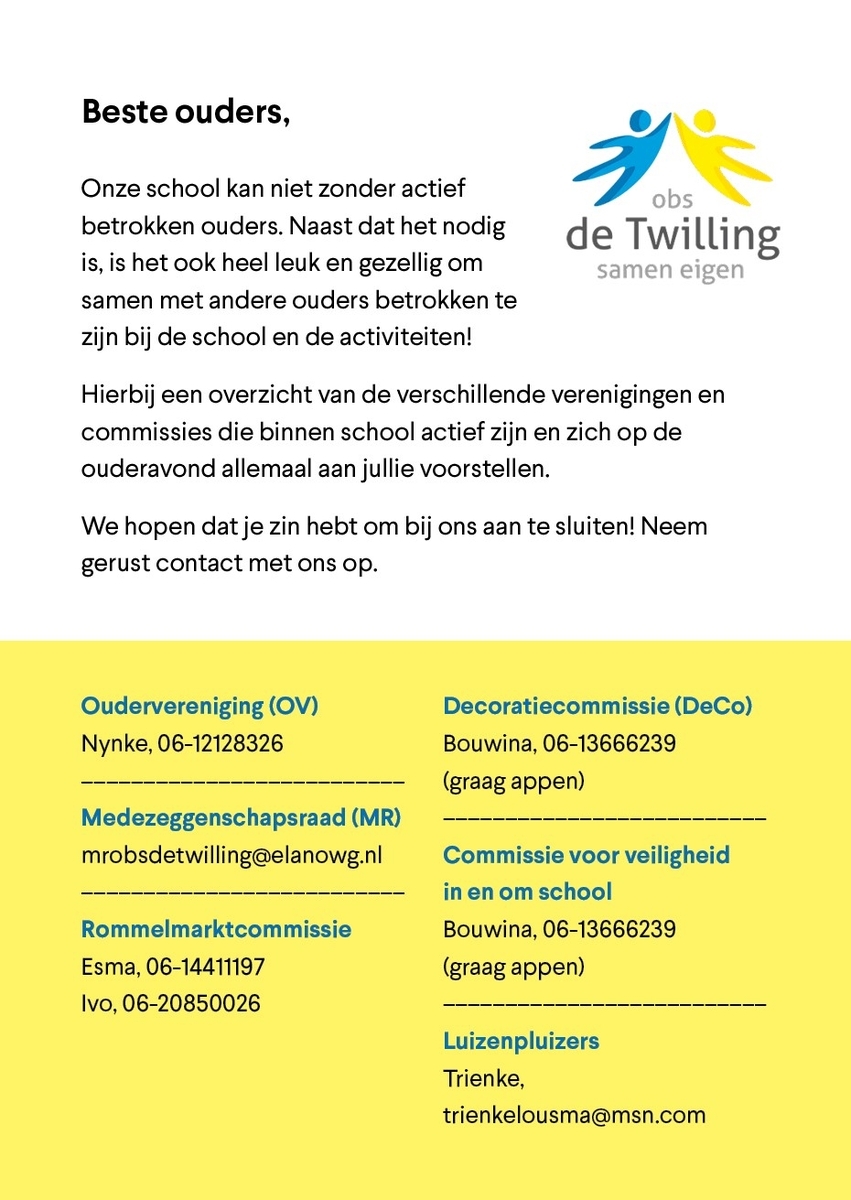 Hierbij stel ik mijzelf voor als MR lid van obs De Twilling.